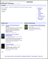 図書館プロジェクトの検索結果の書籍をクリックすると、その書籍についての基本的な情報と、多くの場合は書籍のスニペット(検索キーワードを含む文章の抜粋)が表示されます。書籍の著作権が失効している場合には、書籍全体の閲覧とダウンロードが可能です。いずれの場合も、書籍を購入できるオンライン書店へのリンクと、所蔵している図書館を検索できる書誌データベースへのリンクが表示されます。